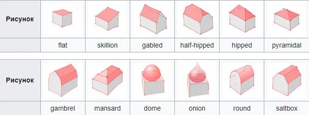 На картинке видно самые распространенные типы крыш на территориях СНГ.
