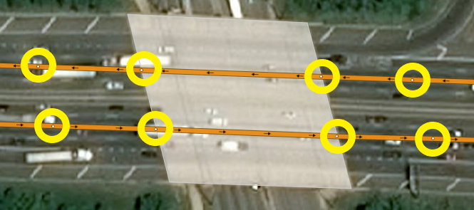 Теперь разрежем дороги на мосту ✂️, чтобы указать соответствующие атрибуты. Это важный момент, поэтому остановимся чуть подробнее на том, как надо поделить дорогу.