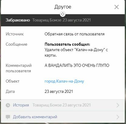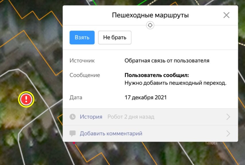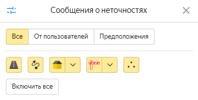 Эти сообщения об ошибкахоставляют пользователи сервисов Яндекса. К сообщению пользователь может прикрепить определенную информацию в виде комментария, фотографии, крестика/линии или маршрута (зависит от категории неточности).