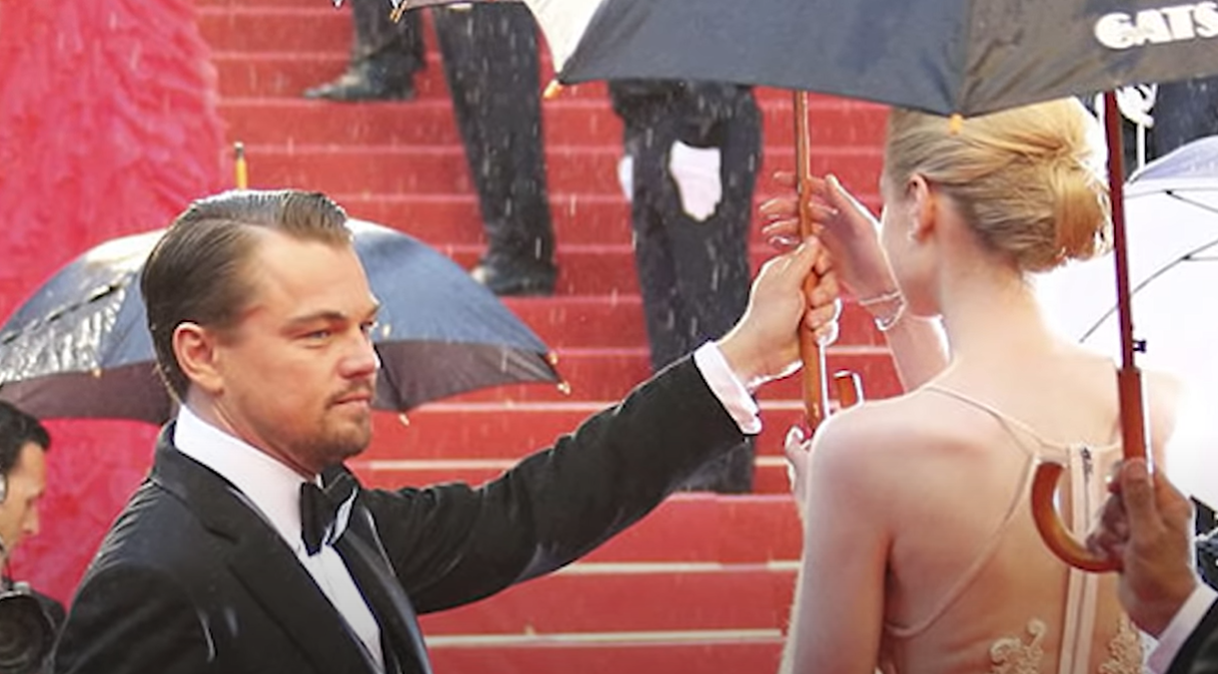 Во многом, его характеризует фотография, сделанная в Каннах на который он отдает свой зонт актрисе Элизабет ДэБике, сам оставаясь мокнуть под дождем, и в этом весь Лео.