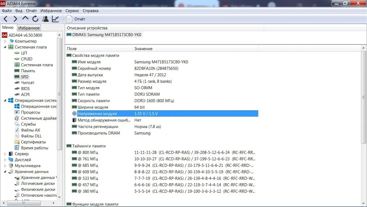 Полез смотреть отчет Aida3-64, там написано в блоке Системная плата - SPD - Напряжение модуля - значение 1,35V/1.5V