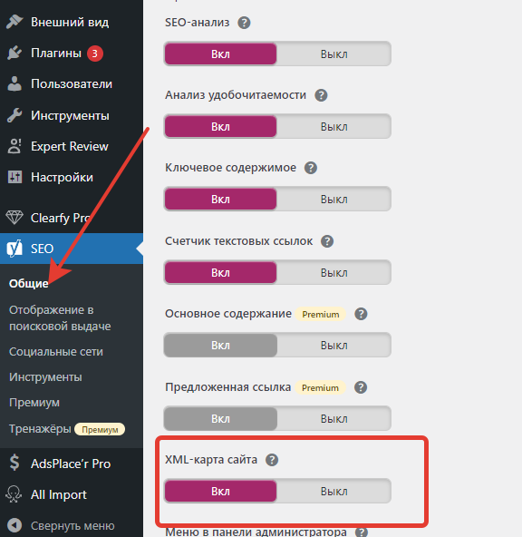 Добрый вечер! Чтобы включить xml карту необходимо пройти в общие настройки и там найти пункт XML карта сайта и включить ее.