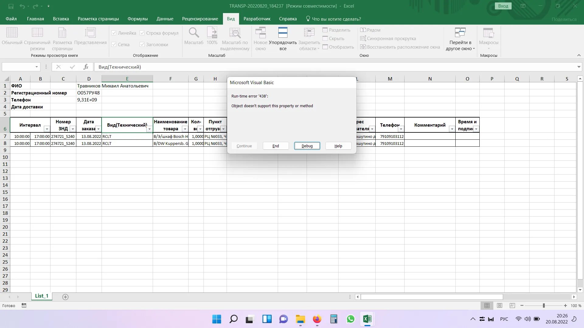 Чтобы ответить на этот вопрос конкретнее, нужно видеть код макроса. нажми Debug, и тогда можно будет понять в какой строке ошибка. Обычно такая ошибка выходит, когда обращаются к свойству объекта, который не определен в данной области видимости, либо у объекта нет такого свойства. Если работает на одном ПК и не работает на другом, то тут, возможно, на этих ПК разные версии офиса, и в одной версии у объекта данное свойство или метод есть, а в другой нет.