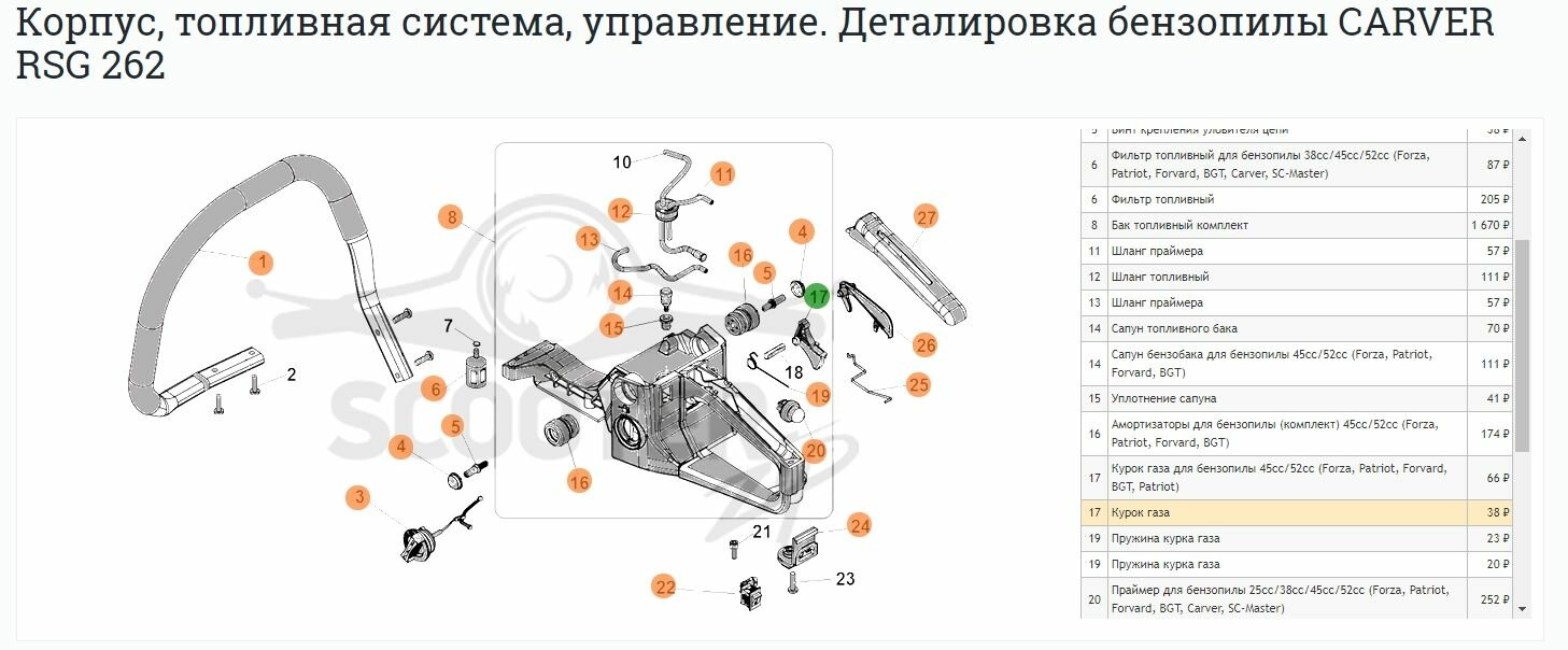 Не понятно о какой бензопиле идет речь. Проще всего написать в поисковой строке Яндекса: "название модели" деталировка.