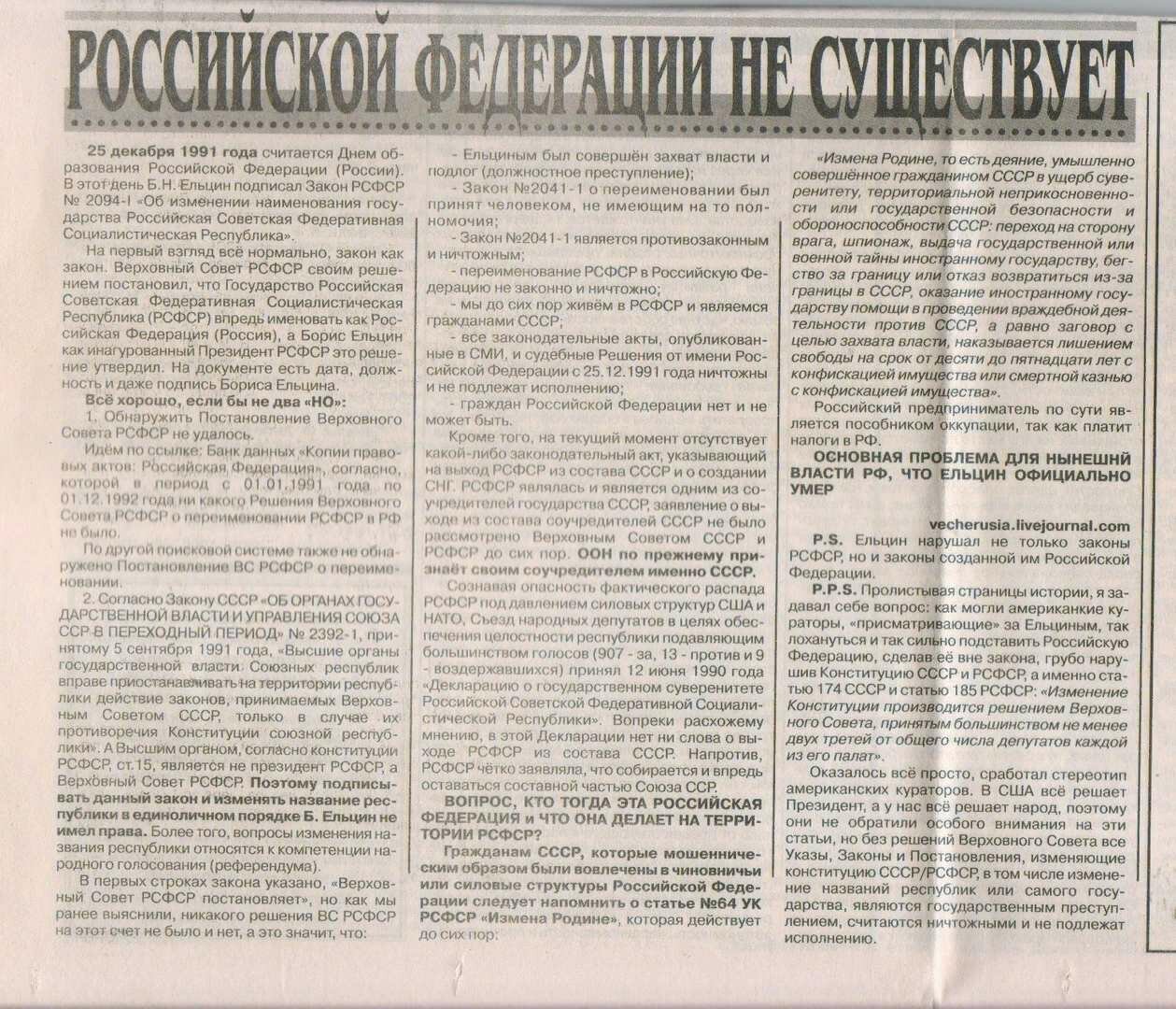 НЕТ. Это Кремль вышел из состава Советского Союза. А народ не выходил. Народ Советские граждане. Кремль инородцы. Читайте документы а не телевизор.