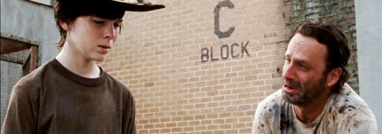3 сезон, 4 серия 41:50 Ходячие мертвецы. Если кому интересно можете посмотреть. Это момент после родов, когда Карл выстрелил в мать ,чтобы она не стала зомби. Когда Рику сказали, что ребёнок жив, но Лори умерла.