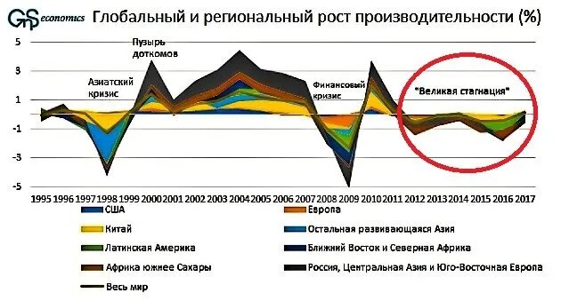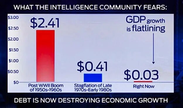 Более того, остаётся неизменной тенденция нормы прибыли к понижению. В период 50-60-х гг. ХХ века на каждый вложенный доллар экономика США получала $2,41 роста. В период 70-80-х гг. она получала $0,41, а сейчас получает всего 3 цента экономического роста на каждый вложенный доллар. Скоро эта цифра станет отрицательной, т.е. на каждый вложенный доллар экономика США будет получать убытки, а не доход.