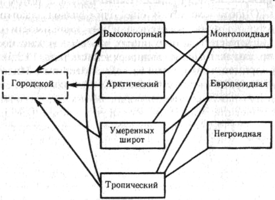 А внутри больших рас существует ещё более тонкая экологическая дифференцировка, связанная с климатом, особенностями питания и даже формами брака...