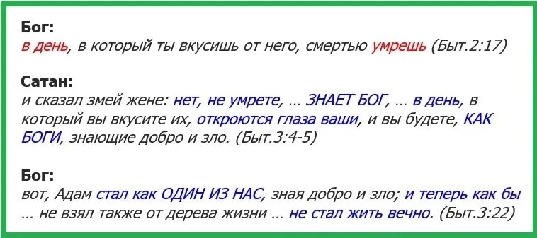 Еще ложью были его слова:"знает Бог, что в день, в который вы вкусите их, откроются глаза ваши, и вы будете, как боги, знающие добро и зло." Ложь чистой монеты.