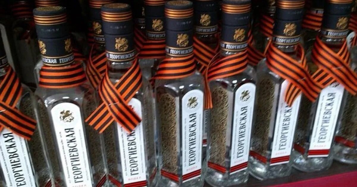 Парад на Красной площади прошёл, конечно же, с присутствием Красного Знамени. Но вопрос был НЕ про парад, а проплавное изменение основного символа. Теперь ассоциативный приоритет у чёрно-оранжевой ленточки, не так ли? Она тоже символ Победы. Но для чего была запущена акция, в ходе которой Георгиевскую ленточку за эти годы где только ни носили, на что только ни повязывали? На одежду во всех возможных местах: на штаны, на пояс, на прорамки для пуговиц, на задницу бантики; на голову, на руки, на рюкзаки и сумки, даже на обувь, в сумасшедших количествах обвязывались и обвешивались ими с ног до головы, на авто пристраивали снаружи и в салоне… Даже на водку.