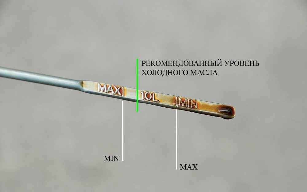 На всех масляных щупах риски обозначают минимальный и максимальный уровень масла. Если след масла заканчивается между ними, то уровень масла в норме.