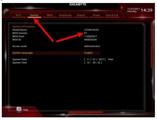 @Илья Боровков, при загрузке ПК нажимаем клавишу DEL, дальше входим в меню "System", там видно версию.