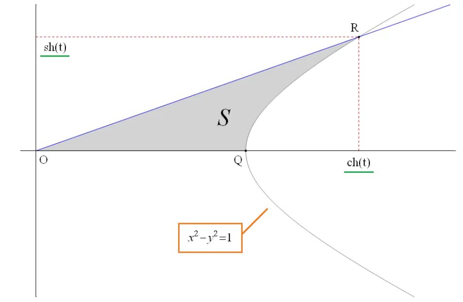 Точно не знаю, однако, график ch x называется цепной линией, если держать цепочку за концы на одном уровне, то её форма описывается гиперболическим косинусом ƒ(x)=(e^x+e^-x)/2=ch x, а так же как аналитическое продолжение тригонометрических функций на комплексную область cos (ix)=ch x, sin (ix)=i•sh x, tg (ix)=i•th x, cth x=1/th x.