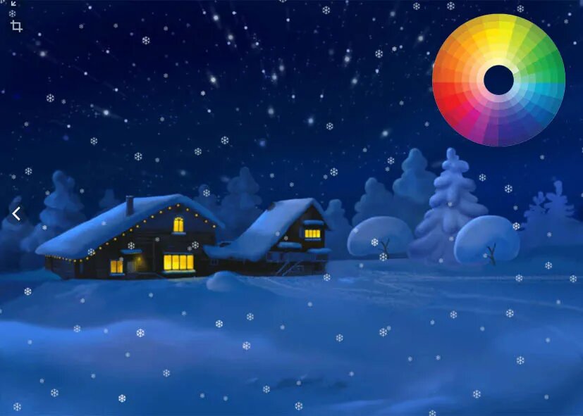 Да, существуют диссонирующие и гармонирующие цветовые сочетания. Как правило гармонируют цвета одной гаммы, то есть расположенные рядом на „цветовом круге“. Например, цвета фиолетовой гаммы будут гармонировать с цветами красной и синей гаммы и контрастировать или диссонировать с цветами жёлто-зелёной гаммы. Этим пользуются. Изображая зимнюю лунную ночь в синей гамме, художник непременно добавит светящееся окошко избы из гаммы, контрастирующей с сине-фиолетовой. Типа вот: