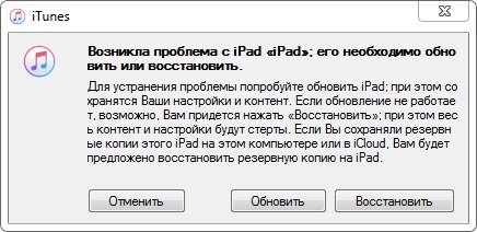 После этого откройте iTunes на своем компьютере. Появится такой экран. Выберите «Восстановить», чтобы сбросить настроики iPad.