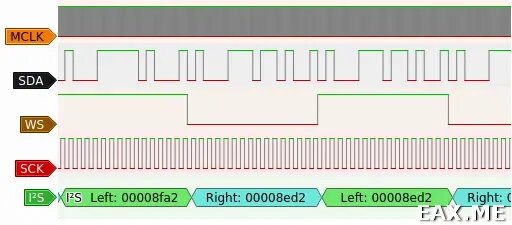 Но попробую ответить. На рисунке представлены эпюры кодированного стереосигнала с амплитудной оцифровкой на 16 разрядном АЦП. MCLK - это цифровой код для двух сигналов для левого и правого канала. Эти данные синхронизированы с меандром переключения каналов SFA, которые разделяют данные. Скажем положительный такт SDA слпровождает одну выборку с 16 разрядными кодом, который несёт информацию о ее амплитуде. В отрицательном такте (оговорюсь, где напряжение SDA равно нулю) амплитудная информация одной выборке другого канала. Понятно, что частота переключения каналов должна быть по крайней мере в два раза выше максимальной частоты сигнала, обычно немного выше 44 кГц (из-за неидеальности системы преобразованиям или выше кратно. Есть исторические сложившиеся стандарты на частототу выборок.