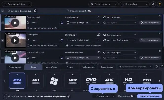 Сжать размер видео без потери качества можно при помощи Конвертера Видео Movavi. Чтобы уменьшить объем видео при помощи Movavi Video Converter, выполните 4 простых шага.