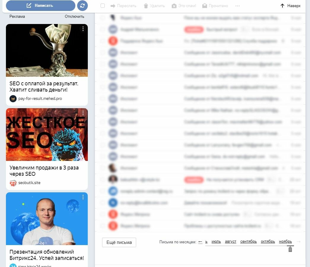 Добрый день. Вопрос, который волнует всех, на сколько я знаю нужно купить подписку яндекс 360 и тогда реклама не будет показываться внутри почты.