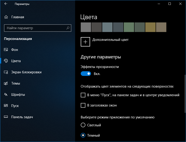 После этого, окно приложения «Параметры Windows» и некоторые другие приложения операционной системы, изменят цвет на темный.