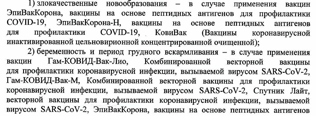 Минздрав своим приказом №8н от 13.01.2022г. утвердил Перечень медицинских противопоказаний к проведению профилактических прививок против новой коронавирусной инфекции Covid-19. Состоит он из трех частей:
