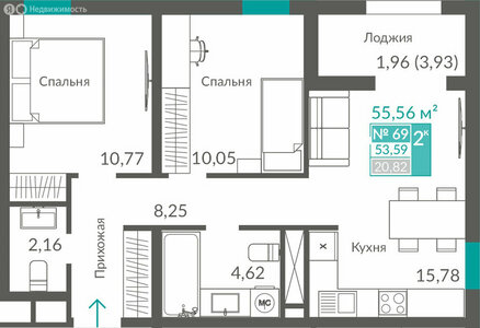·2-комн.·53,59 м²·9/12 этаж