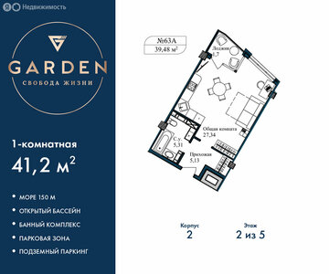 ·Студия·44,1 м²·2/5 этаж