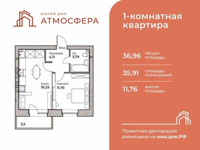 ·1-комн.·36,96 м²·6/9 этаж