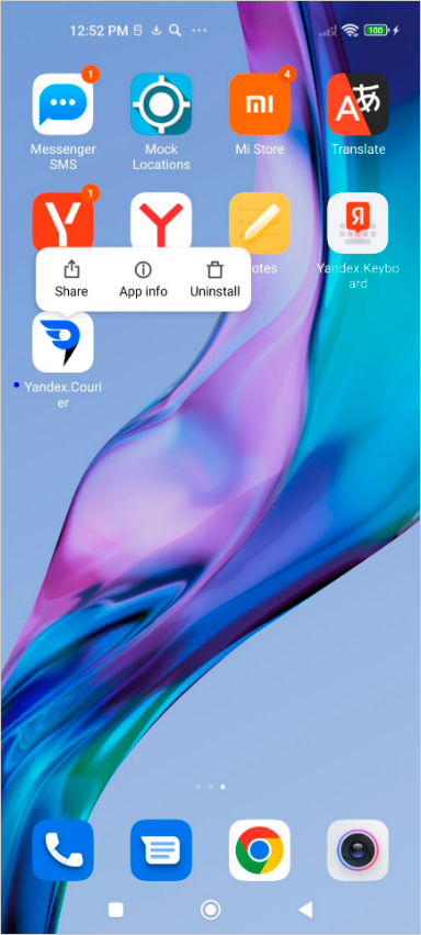 Tap and hold the Yandex Courier app icon. In the window that appears, tap
