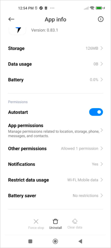 - Battery management: Allow → No restrictions. When the app is running, the phone's battery life will be drained faster.