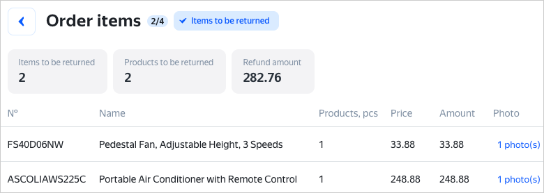 If a client returns some of the orders, the courier marks this with a comment in the Yandex Courier app and can also add photos for each item. For more information, see Partial delivery if order items are specified.