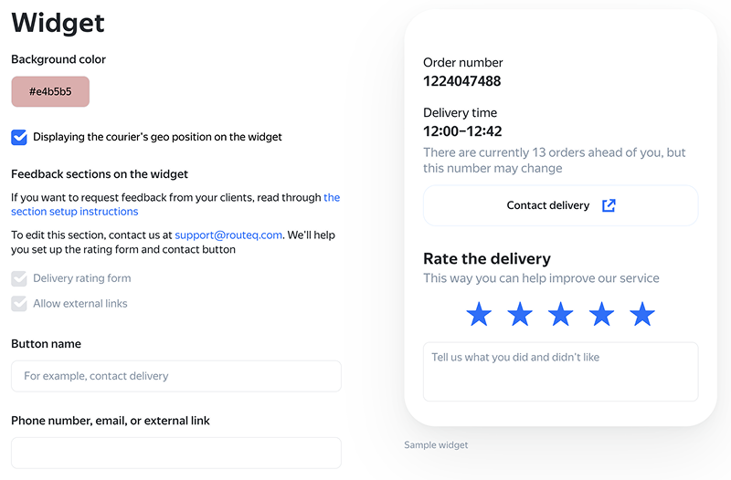 A user with the Administrator role can enable the display of a widget for their company. The widget is used to get feedback from the client and provide additional information about the order. To activate it:
