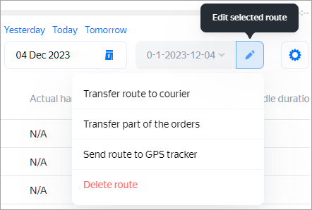 If some orders are canceled or the courier violates the delivery sequence and completes orders from the middle part of the route, you can rearrange the route in accordance with the current status of the orders. In this case, the completed orders will be moved to the beginning of the route, and a new, accurate ETA will be calculated for the remaining orders.