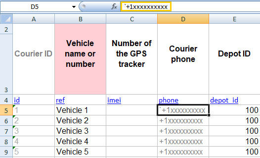 ) column. - In the Number of the GPS tracker column, enter the numbers you received.