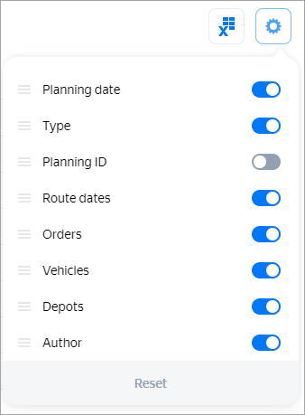 The Planning ID column is hidden by default. You can unhide it in the table view settings. You can drag columns to reorder them.