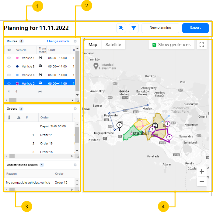 Geofences that haven't been added to the company's data but were specified during planning and meet the conditions above will still be displayed in the resulting solution.