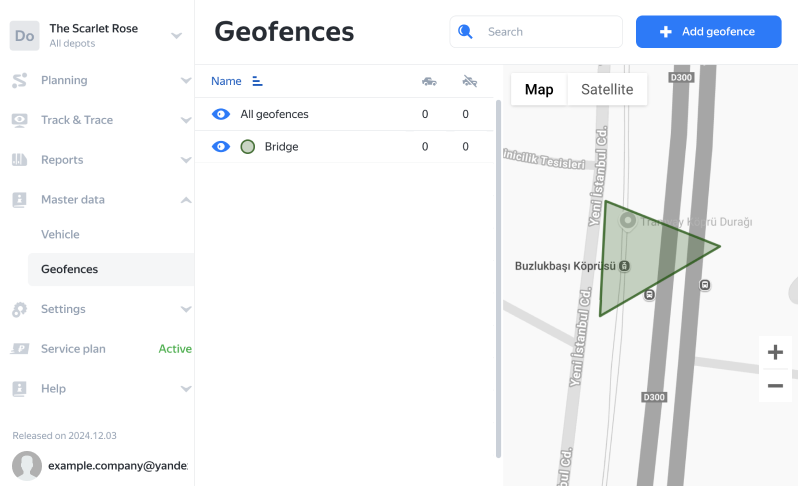 For example, you don't need to select the entire bridge area to prohibit couriers from passing through it. Just add a triangular geofence at the entrance.