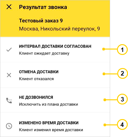 Выберите, если не удалось дозвониться до клиента. Заказ будет исключен из плана доставки и обозначится меткой