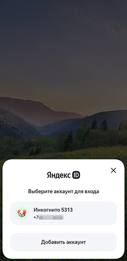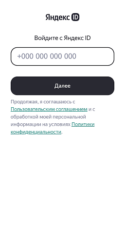 В зависимости от того, входили ли вы на этом устройстве в другие приложения Яндекса, отобразится один из вариантов: