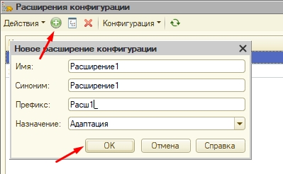Откроется список, в котором нужно добавить новое расширение с помощью кнопки Добавить. Все параметры нового расширения нужно оставить заполненными по умолчанию и нажать ОК.