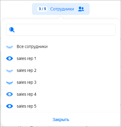 В фильтре перечисляются значения из поля Свойства сотрудников таблицы Маршруты (равносильны тегам). Чтобы отобразить маршруты, которые удовлетворяют определенным свойствам сотрудника, выберите соответствующее значение. Возможен множественный выбор. В результате данные отфильтруются во всех блоках.