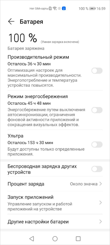 Перейдите в Настройки → Батарея и отключите режимы энергосбережения.