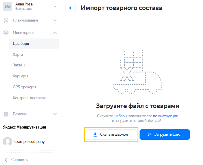 Шаблон можно скачать также через интерфейс Рабочего места логиста. Для этого: