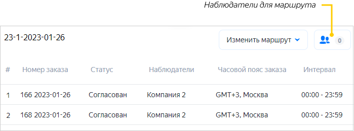 Наблюдатели получают доступ ко всем заказам выбранного маршрута.