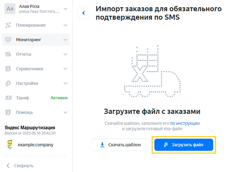 Вы можете загрузить в Мониторинг информацию о заказах, для которых требуется подтверждение доставки через SMS. Эта возможность предоставляется по запросу и тарифицируется отдельно, см. Настройка отправки SMS.