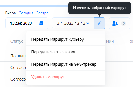 → Передать маршрут курьеру. Если нужного курьера нет в списке, вы можете добавить его.