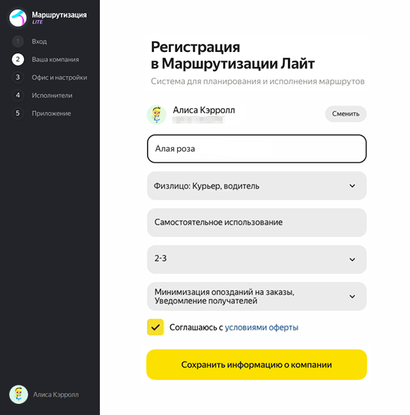 Ознакомьтесь с условиями использования сервиса. После создания компании вам доступна пробная подписка на 31 день для двух курьеров. Также можно сразу оплатить подписку и получить полные возможности сервиса или оформить ее позже.