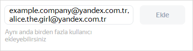 Birden fazla kullanıcı eklemek istiyorsanız, e-posta adreslerini virgülle ayırın.