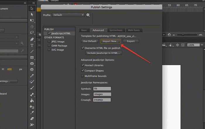 Create an HTML5 Canvas project in Adobe Animate (or open an existing one).