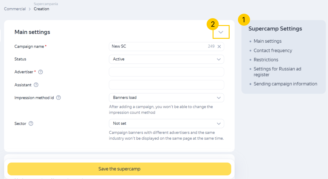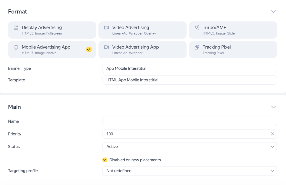 To learn more about the new settings, see Registering ad creatives in Adfox. |