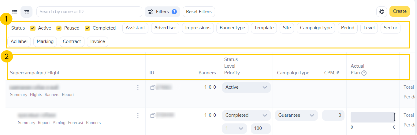 Search filters for banners and campaigns Added new filters for campaign and banner lists: